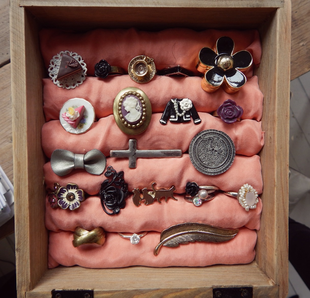 As I said before about my ring- addiction… This wasn’t my first ring-addiction period. When I was younger I had one before.. Here I’ll show you the rings I collected in the past. Of course not all the rings because there are way too many! (I also made the jewelry case myself!)