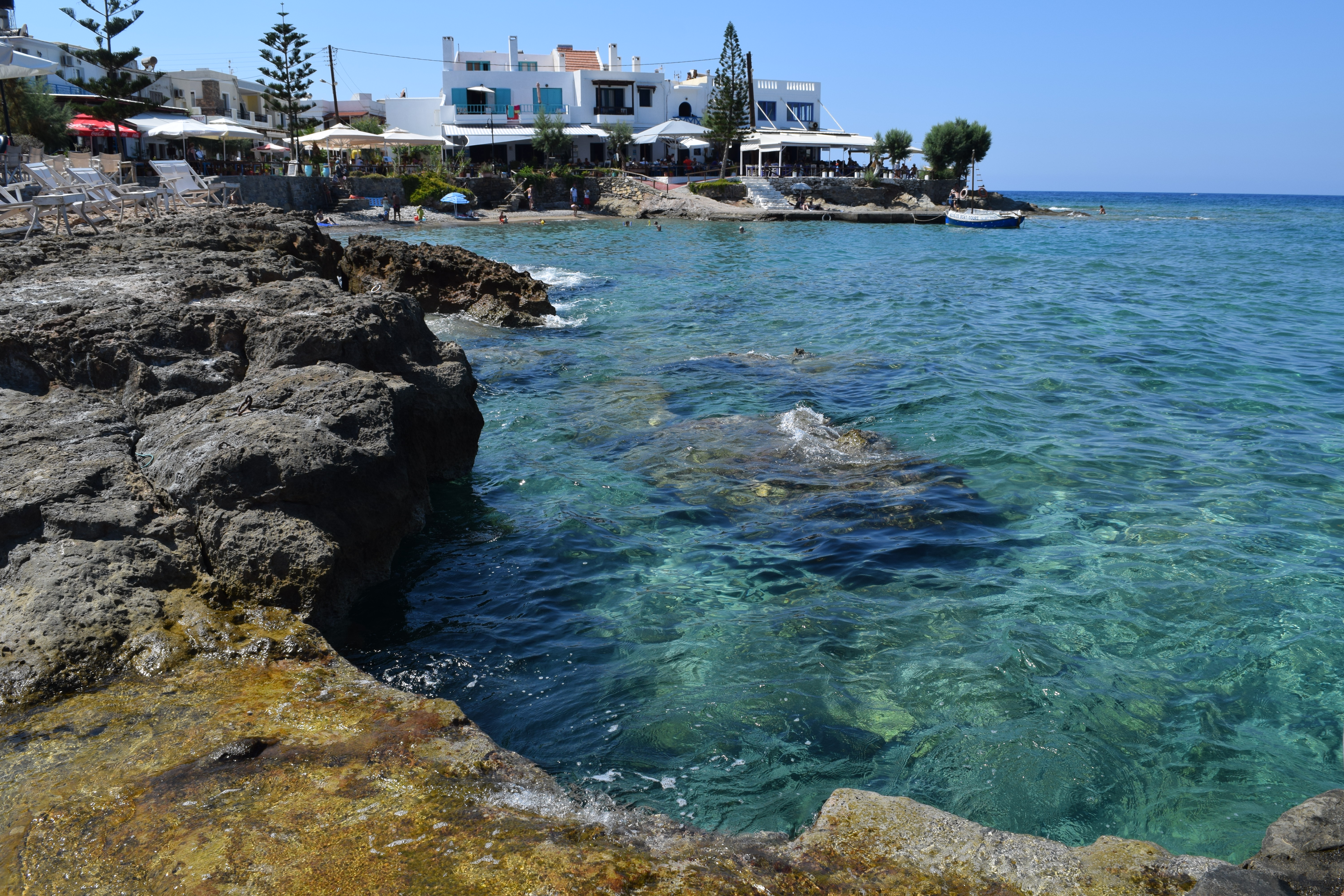 If you ever go to Crete, you have to visit Mochlos. It is exactly like the pictures of Greece: white houses with blue doors, azure blue sea and palm trees. A little romantic village without a lot of tourism. It has small beaches and lots of rocks around it. I loved it.