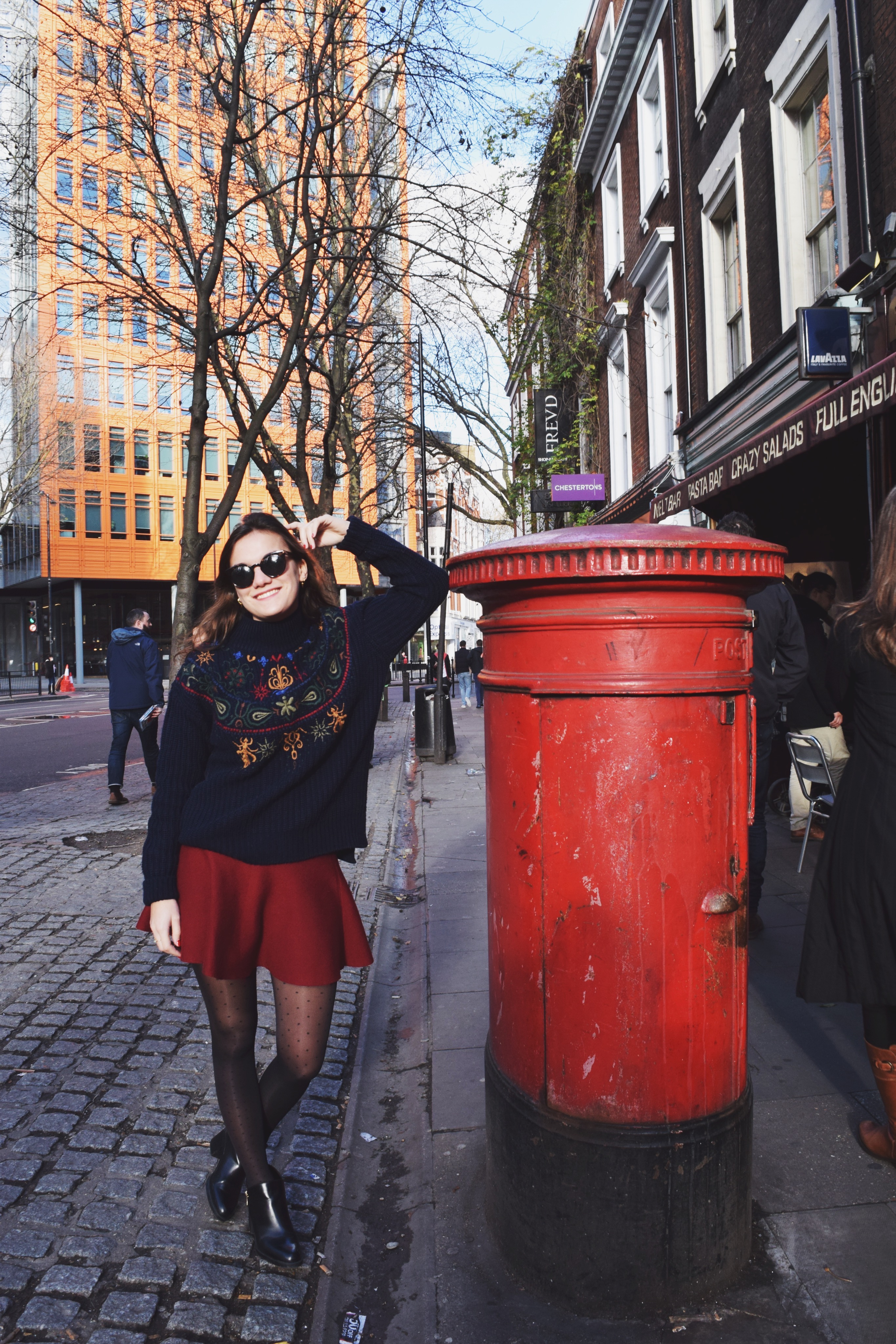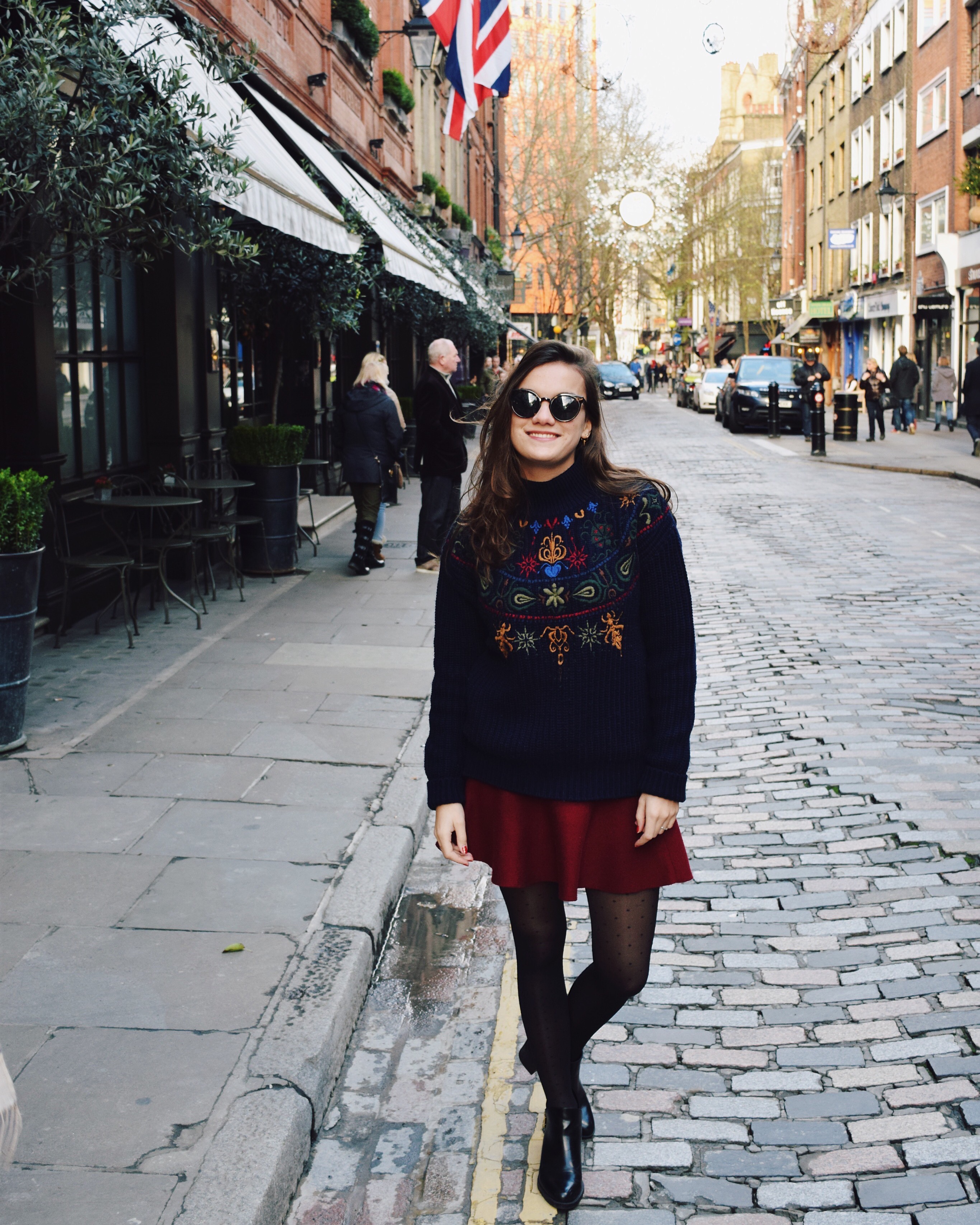 That day we walked through Kensington Gardens and High Park, towards Harrods and Harvey Nichols. Because it was after Christmas the sale was huge. In the afternoon we had lunch on Harrods’ rooftop at the Mezzah lounge. The food was perfect. I had Halloumi which I’m crazy about, it’s so delicious. You should try it! Later that day we went to Topshop and walked to Sloane Square where we visited Kate Spate, which you must visit too. After shopping we had diner at Colbert. Try their cheesecake! Delicious.