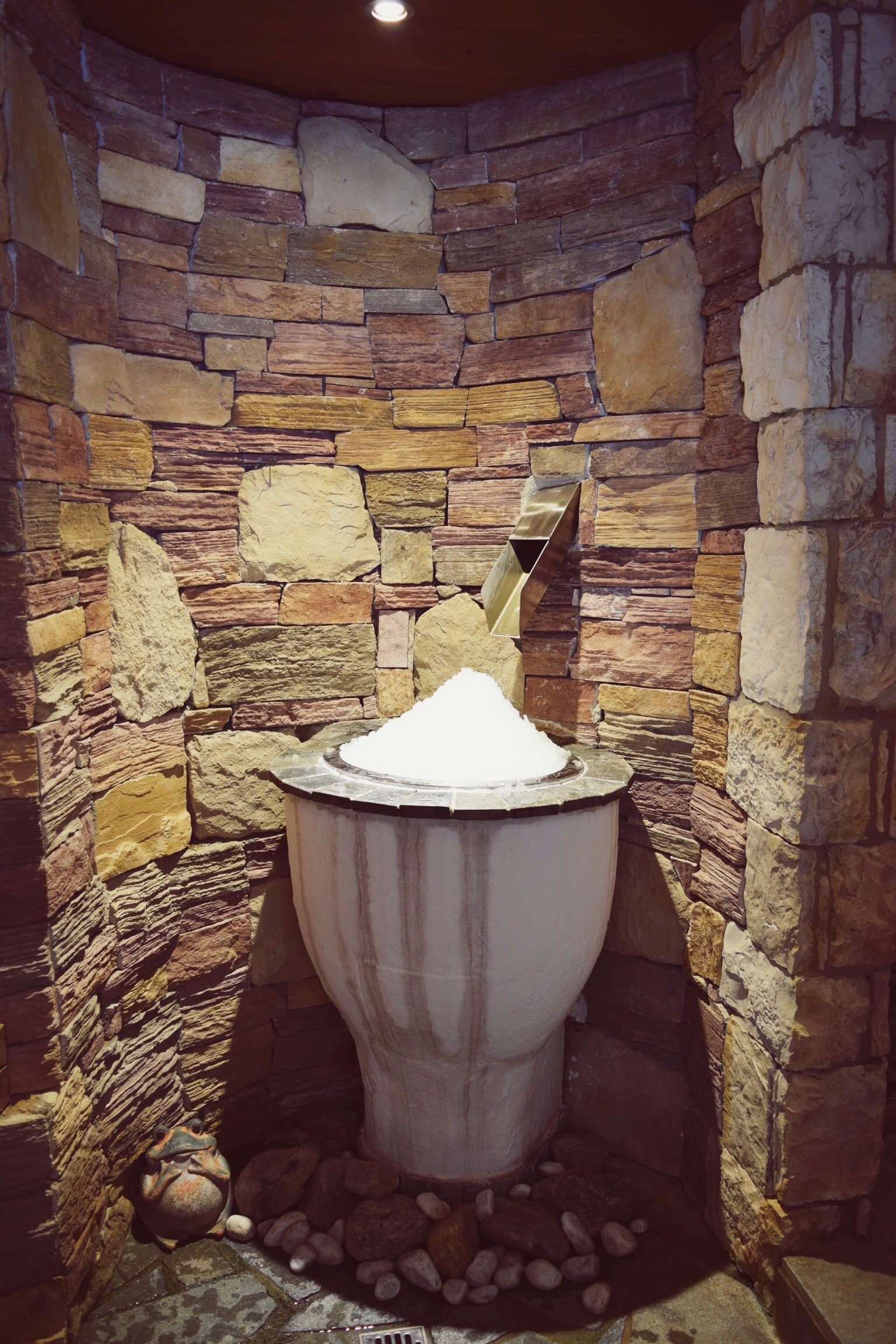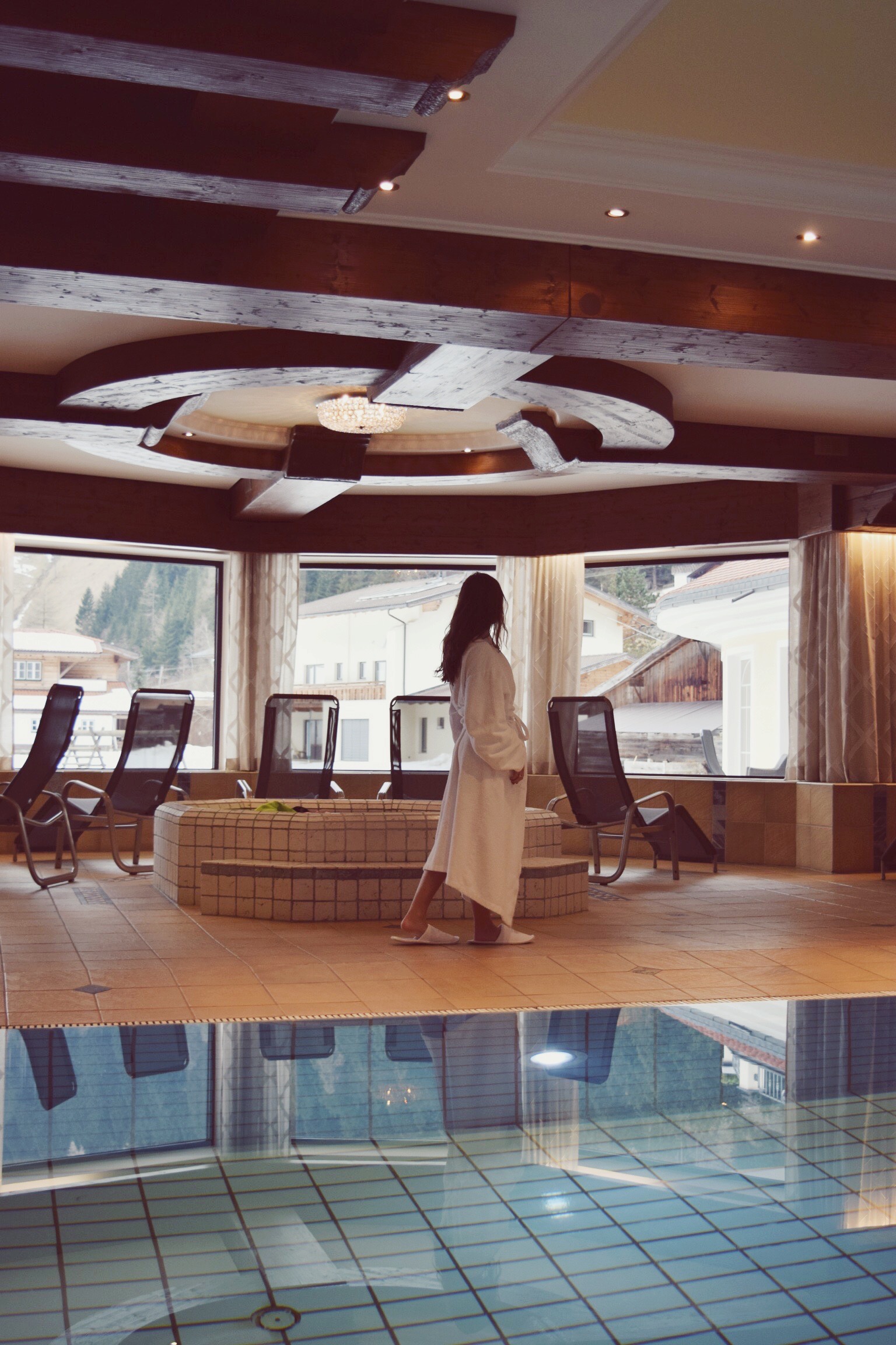 Besides this sauna there is a regular sauna, steam bath, ice fountain, foot-bath, a shower with a cold bucket above you, a swimming pool, heated chairs where you can relax and amazing beauty treatments. I’ll tell you about that in a later blogpost!