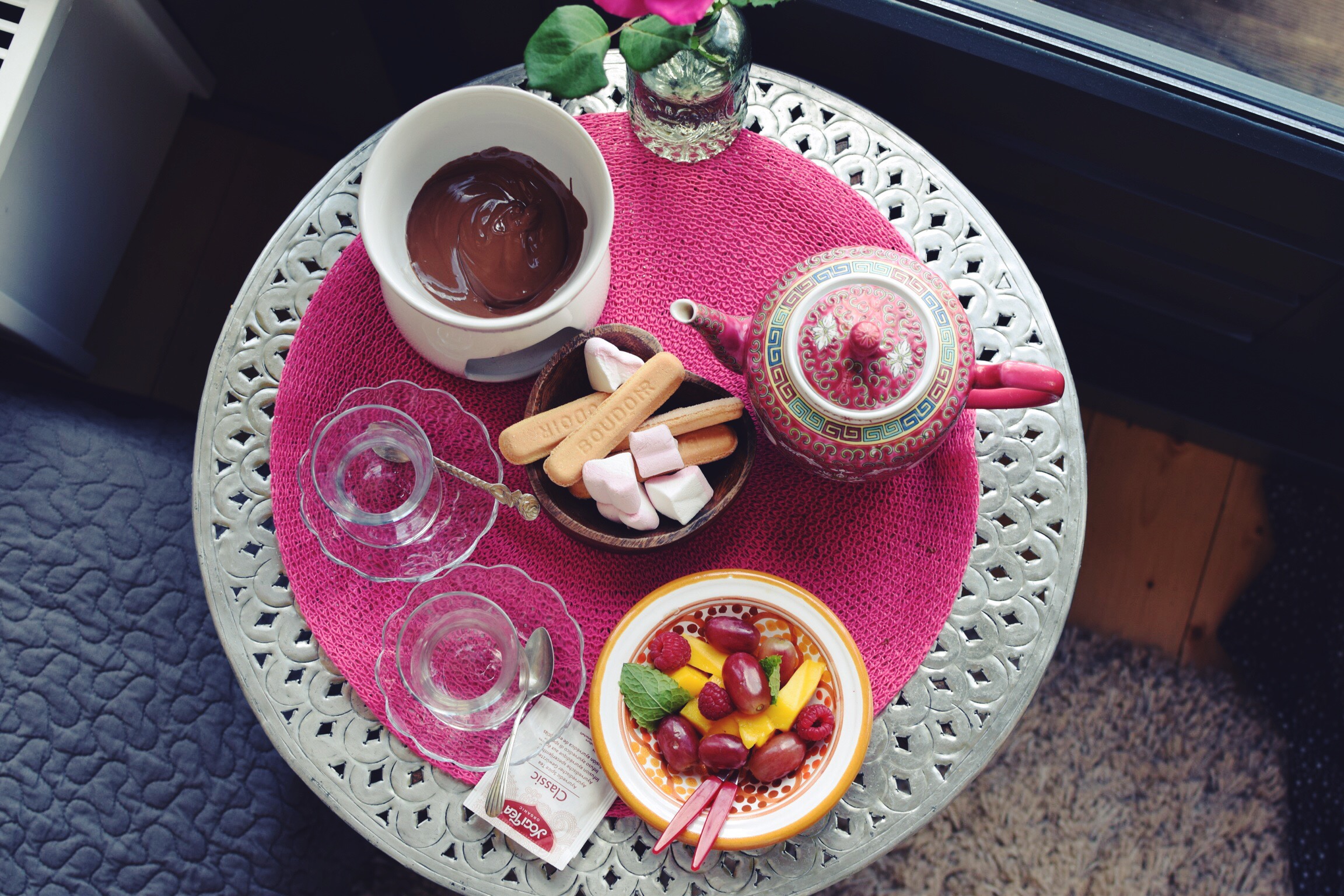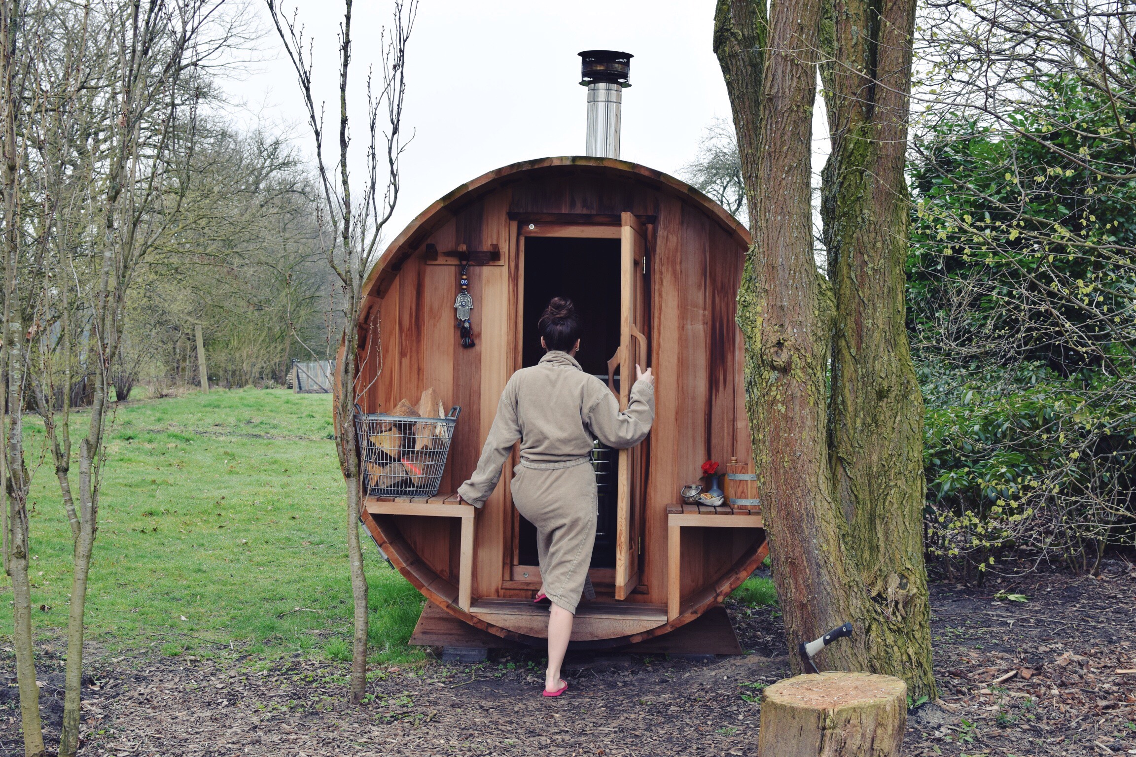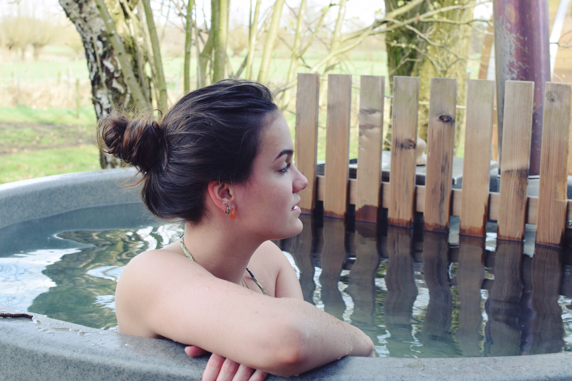 I stayed at the Lotus Bubble: a cosy little cottage in the beautiful countryside near the village of Lochem. We arrived there around 3 pm and I couldn’t believe my eyes. In the middle of the trees and bushes I saw this sort of pyramid-shaped cottage. It looked so wonderful and peaceful, just in the middle of the nature, where it was so quiet and restful. We were welcomed with chocolate fondue (you can’t make me happier) and a tour through the Lotus Bubble. We had a jacuzzi, a hot-tub, a sauna, a huge bed, a great terrace with a view of the pasture and a cosy little fireplace. After we chilled in the hot-tub we had dinner… Well, I couldn’t believe my eyes. It was so delicious and so much food. I loved it. All in all: it was just like a dream.